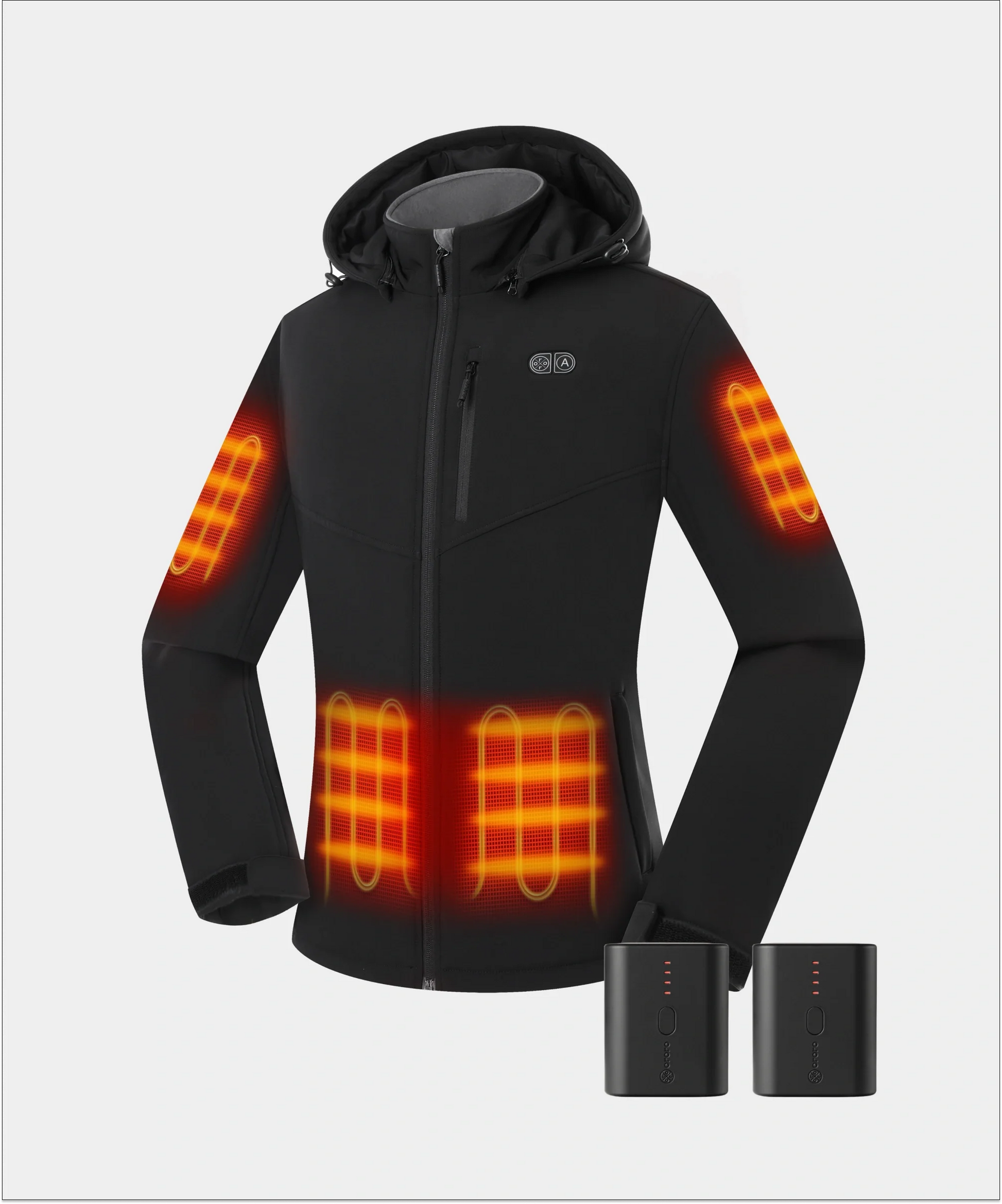 The key distinction lies in the heating zones: this jacket is integrated with heating zones over the left and right pockets, arms, and upper back, setting it apart from the other jackets with heat zones over the chest instead.