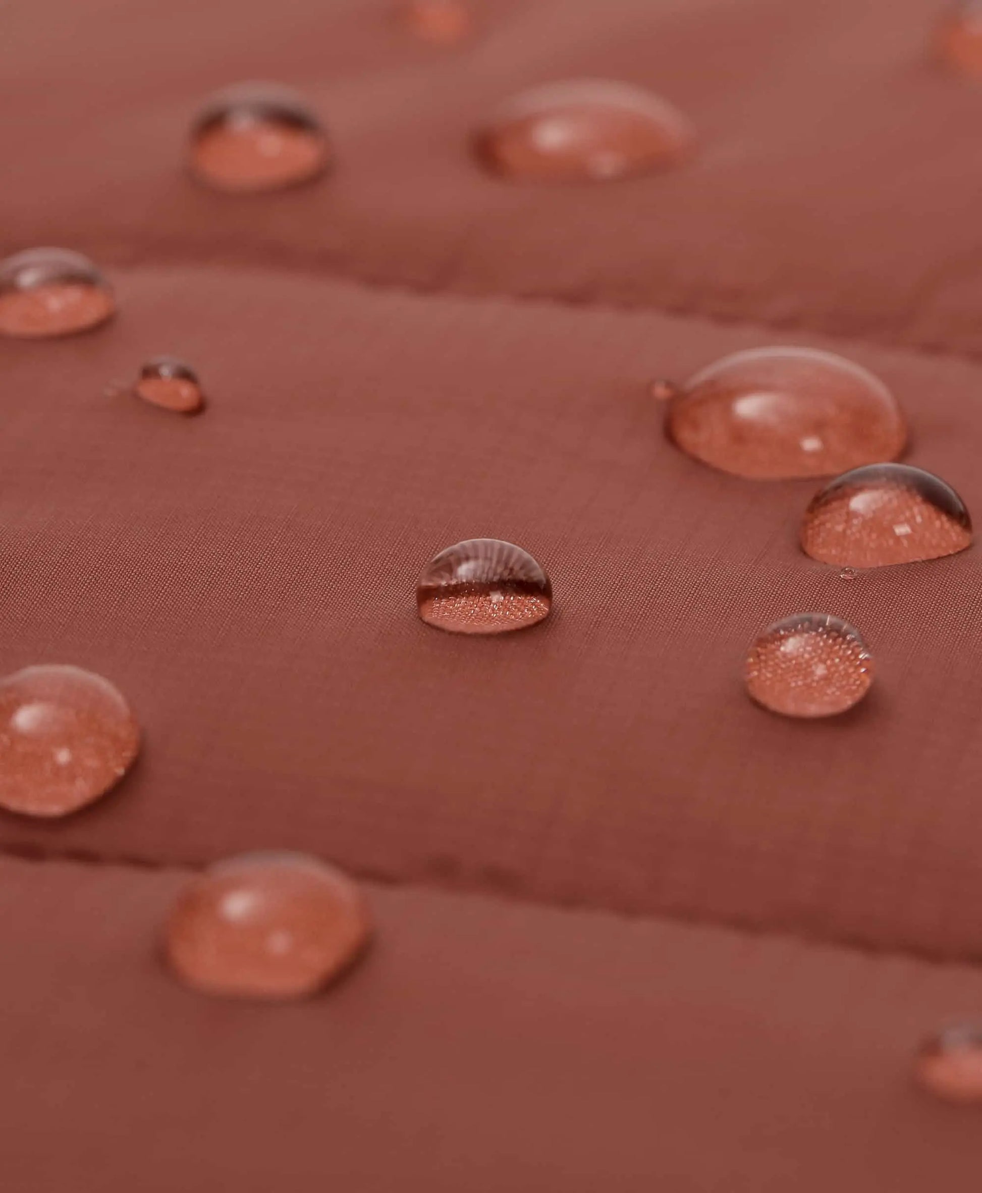 - Water-repellent ripstop nylon shell offers durable protection from light rain and snow.