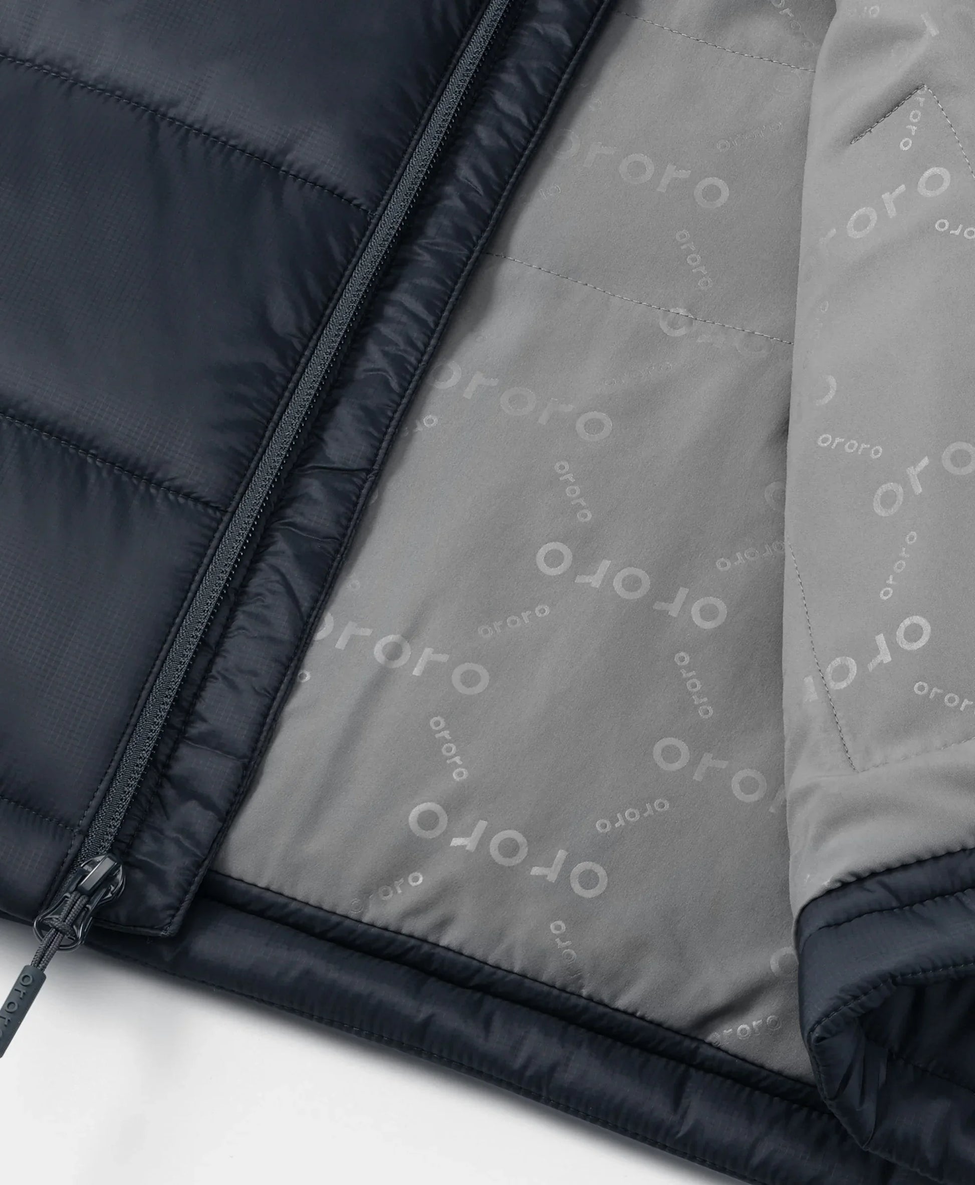 - Lightweight, quilted construction with two zippered hand pockets and one internal battery pocket