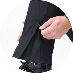- Thigh ventilation zips provide extra airflow to regulate body temperature.