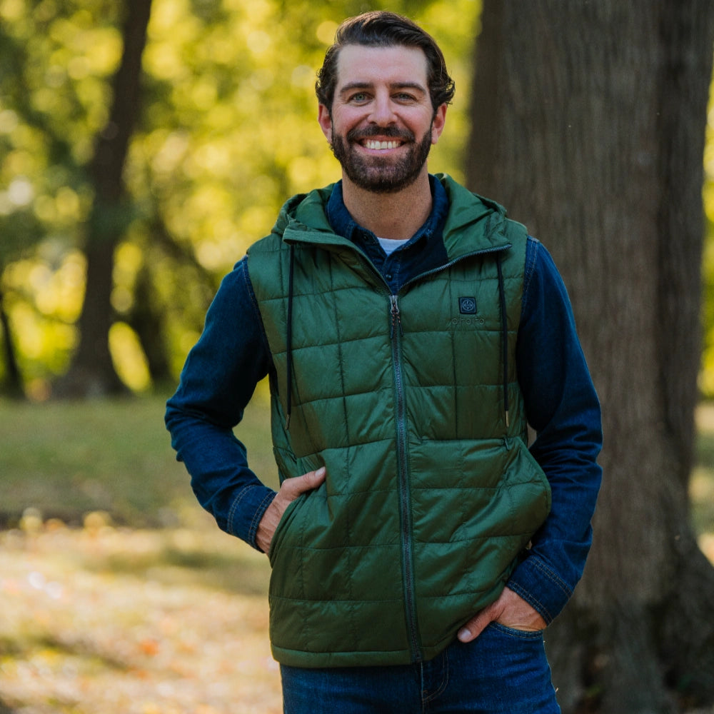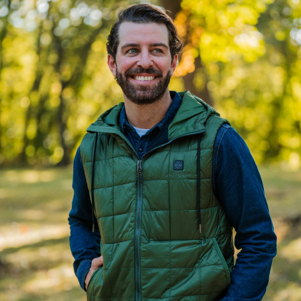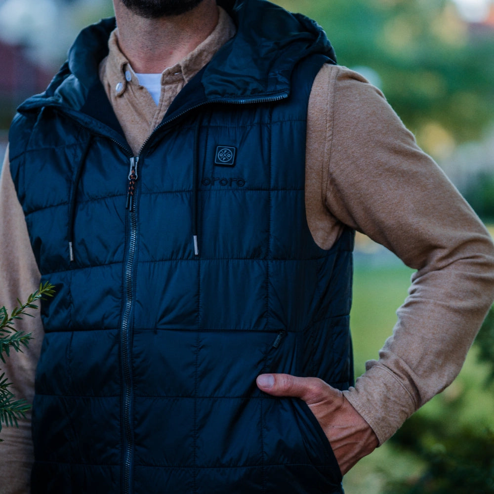 - This lightweight vest features 5 heating zones located on the left and right chest, upper back, mid-back, and lower back.