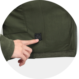 - The power button is conveniently located at the bottom of the jacket's hem, allowing easy access without removing your outer layer. Feel the settings through vibrations, making adjustments a breeze.