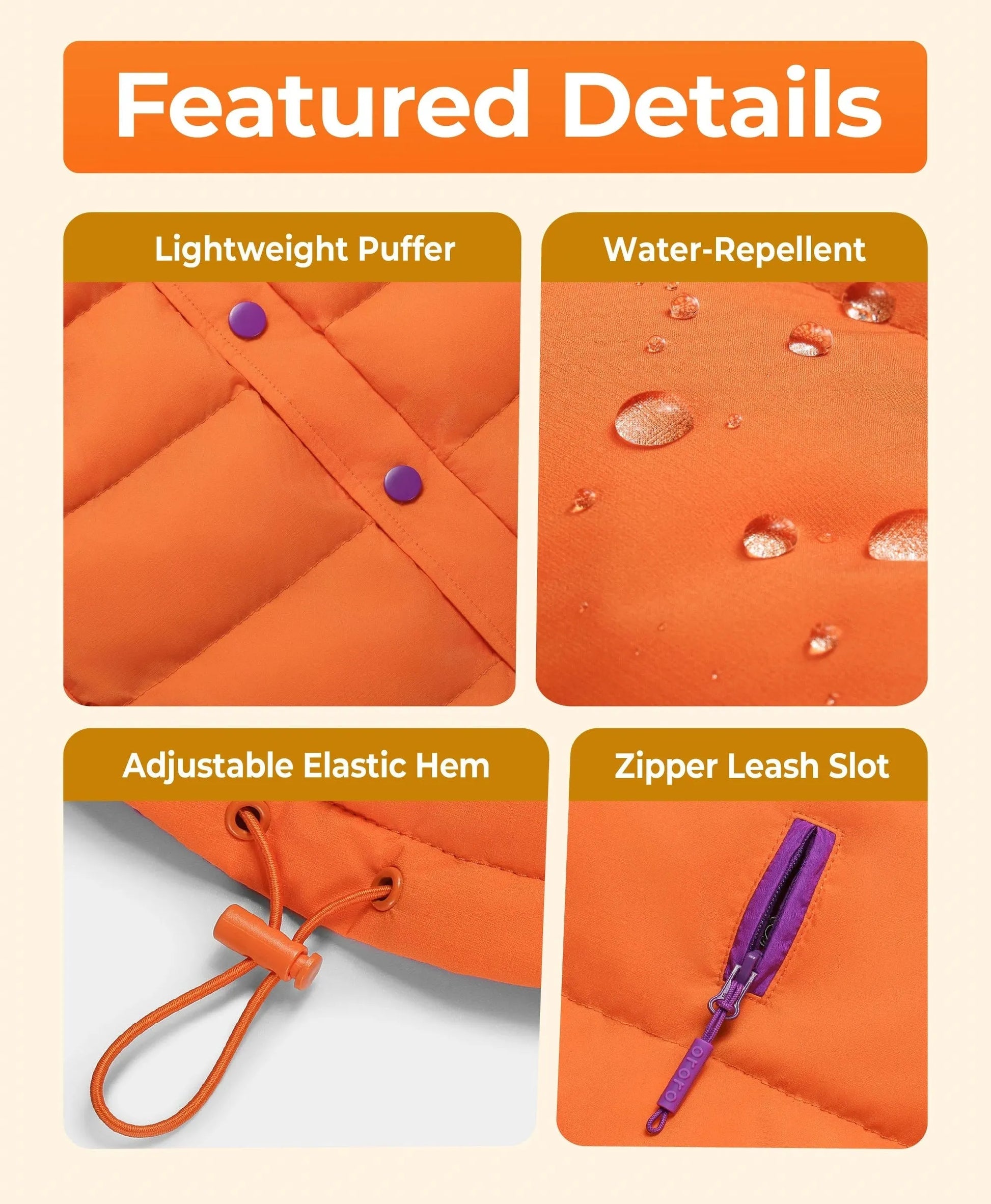 - Zippered leash opening under the collar allows easy attachment to a leash or harness.