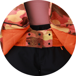 - Elastic powder skirt and hem cinch drawcord system seal out snow, keeping you dry and comfortable.