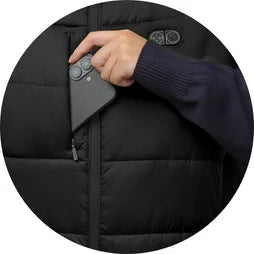 - 6 heating zones (left & right hand pockets, left & right chest, mid-back, collar)