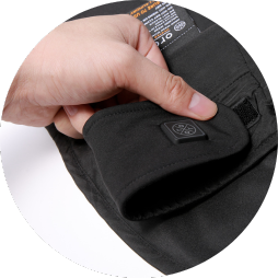 - The velcro on the back of the power button allows you to hide the button to keep a low profile and clean look while layering with an outer jacket.