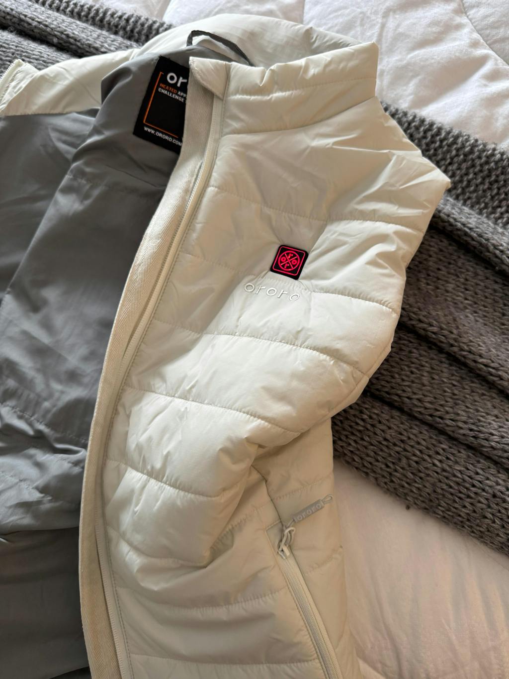 - Four carbon fiber heating elements (left & right pocket, collar, middle back)