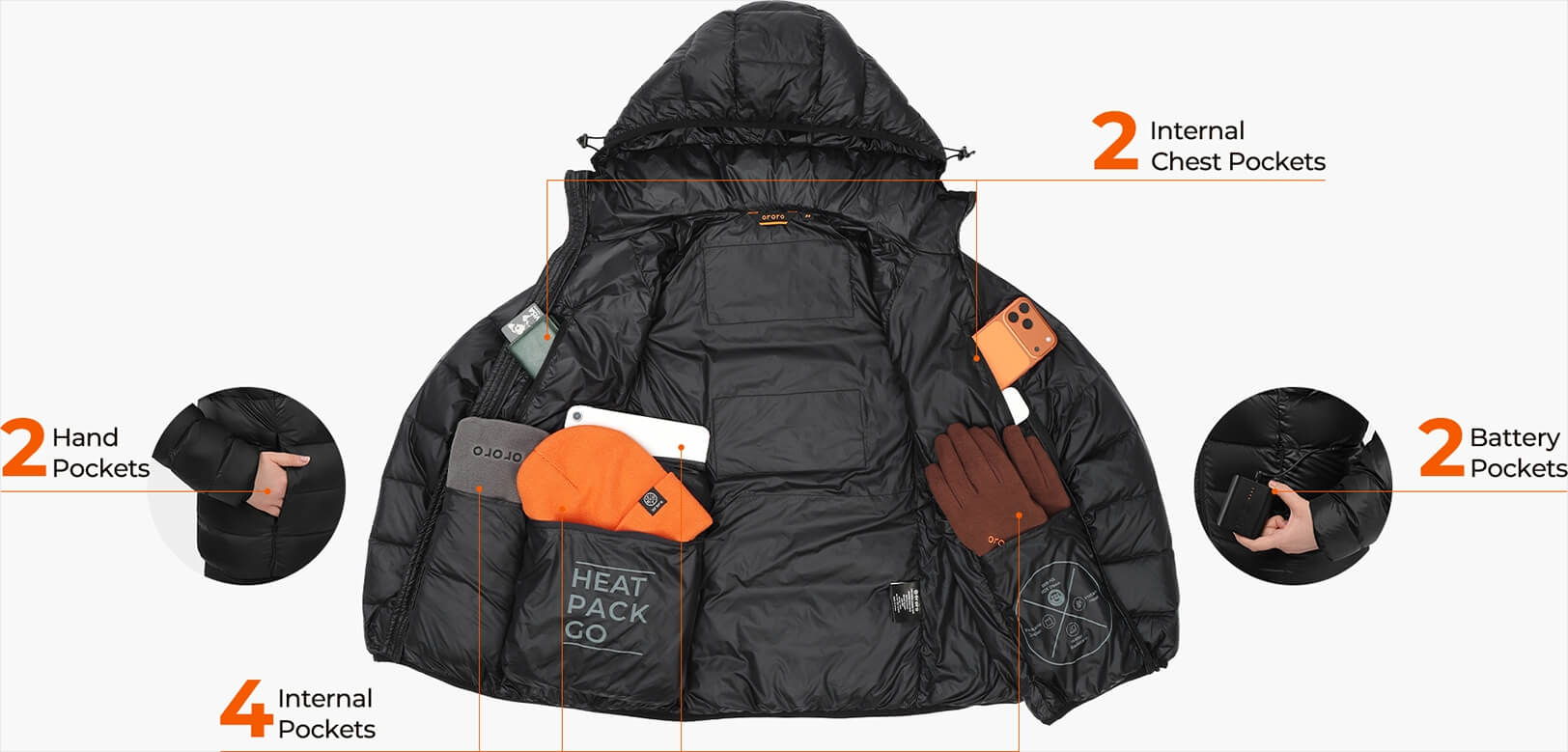 The inner pocket doubles as a storage pouch, allowing the entire jacket to be packed into a compact pillow for easy carrying. Perfect for air travel.