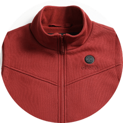 • Mock-neck collar and elastic hem provide extra protection from the wind and seal the heat.